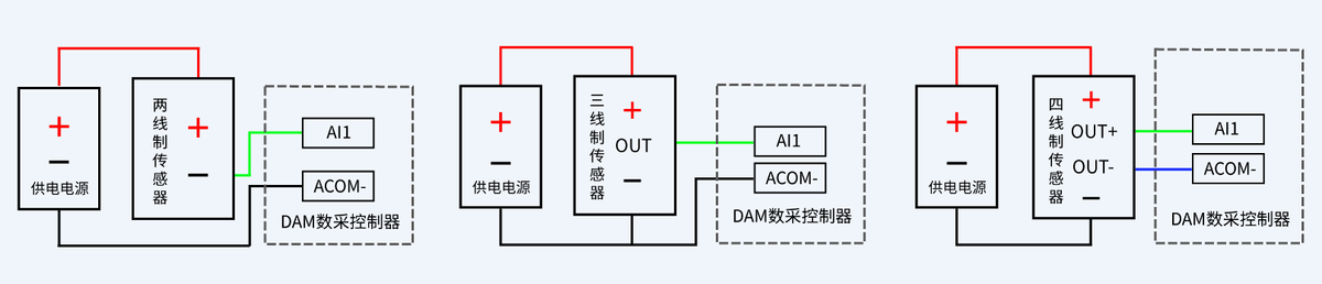 下圖中的電源部分為傳感器供電,AI1-AI8接傳感器信號正,ACOM-為傳感器信號負,ACOM+不用。