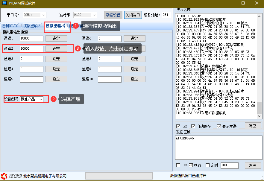 點擊JYDAM調試軟件下方偏移地址后邊的“讀取”或“設置”來對設備的偏移地址進行讀取或設置。