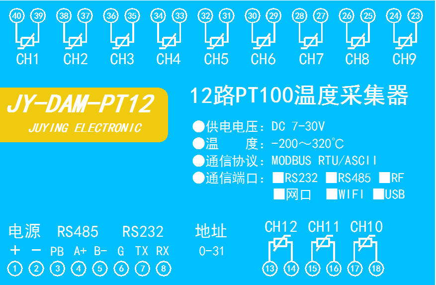 功能說(shuō)明:12路PT100