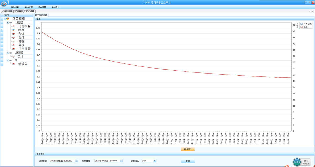 聚英組態(tài)軟件可監(jiān)控菜單下可以實(shí)時(shí)監(jiān)控每路的溫度及變化曲線,并可導(dǎo)出歷史數(shù)據(jù)和歷史曲線記錄。