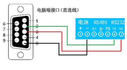 電腦自帶的串口一般是RS232,需要配232-485轉換器(工業環境建議使用有源帶隔離的轉換器),轉換后RS485為A、B兩線,A接板上A端子,B接板上B端子,485屏蔽可以接GND。若設備比較多建議采用雙絞屏蔽線,采用鏈型網絡結構。