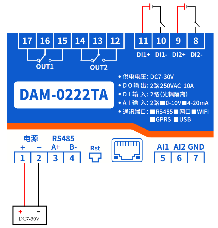 DAM0222TA-485 | ● | ● | 2 | 2 | 2 |