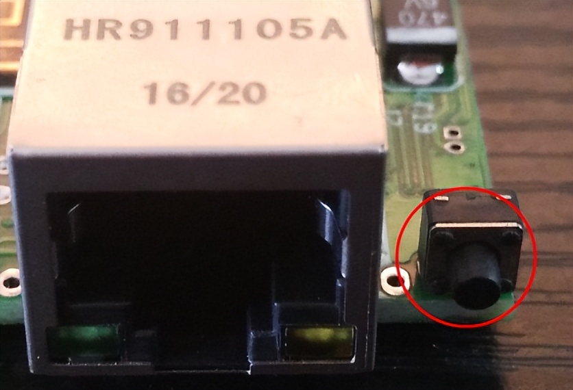 網口左邊有黑色的小按鍵為復位按鍵。