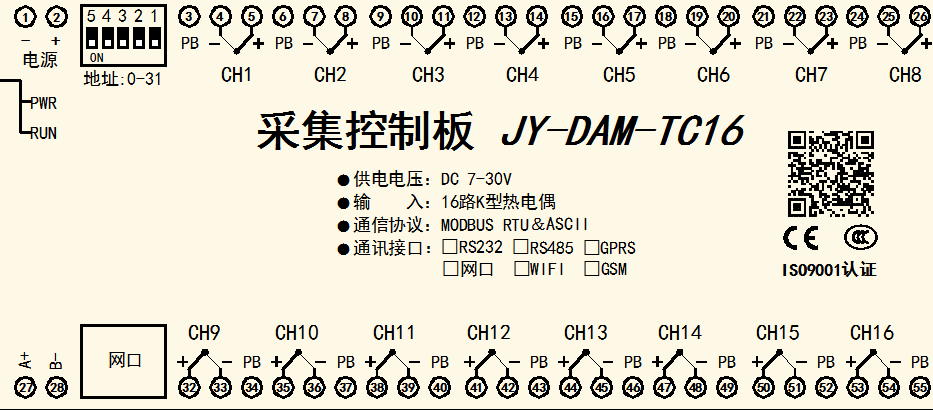 功能說明:16DO+16AI