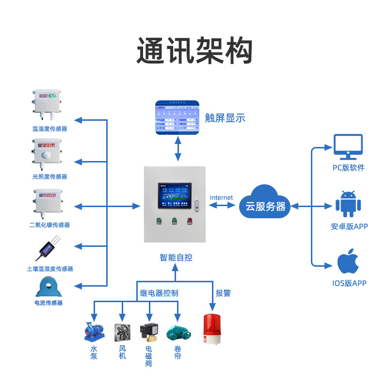 農(nóng)業(yè)智能控制器是我公司云系列設(shè)備中網(wǎng)絡(luò)版的一種,設(shè)備通過連接Internet廣域網(wǎng)來進(jìn)行通訊,使用我司配套的云平臺(tái)軟件可實(shí)現(xiàn)遠(yuǎn)程控制設(shè)備功能,每個(gè)設(shè)備具有唯一 ID 號(hào)方便用戶進(jìn)行二次開發(fā)使用。